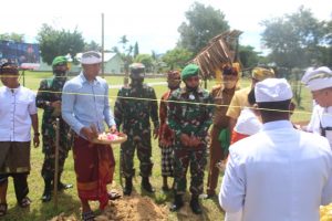 KENDARI,Beritakotaonline.id – Batalyon Infanteri (Yonif) 725/Woroagi akan memiliki tempat ibadah anggota yang beragama Hindu, setelah Komandan Batalyon Infanteri (Danyonif) 725/Woroagi Mayor Inf Muhammad Amin, S.IP., yang mewakili Komandan Korem (Danrem) 143/Halu Oleo Brigjen TNI Jannie Aldrin Siahaan, S.E., M.B.A., mengadakan upacara prosesi peletakan batu pertama.