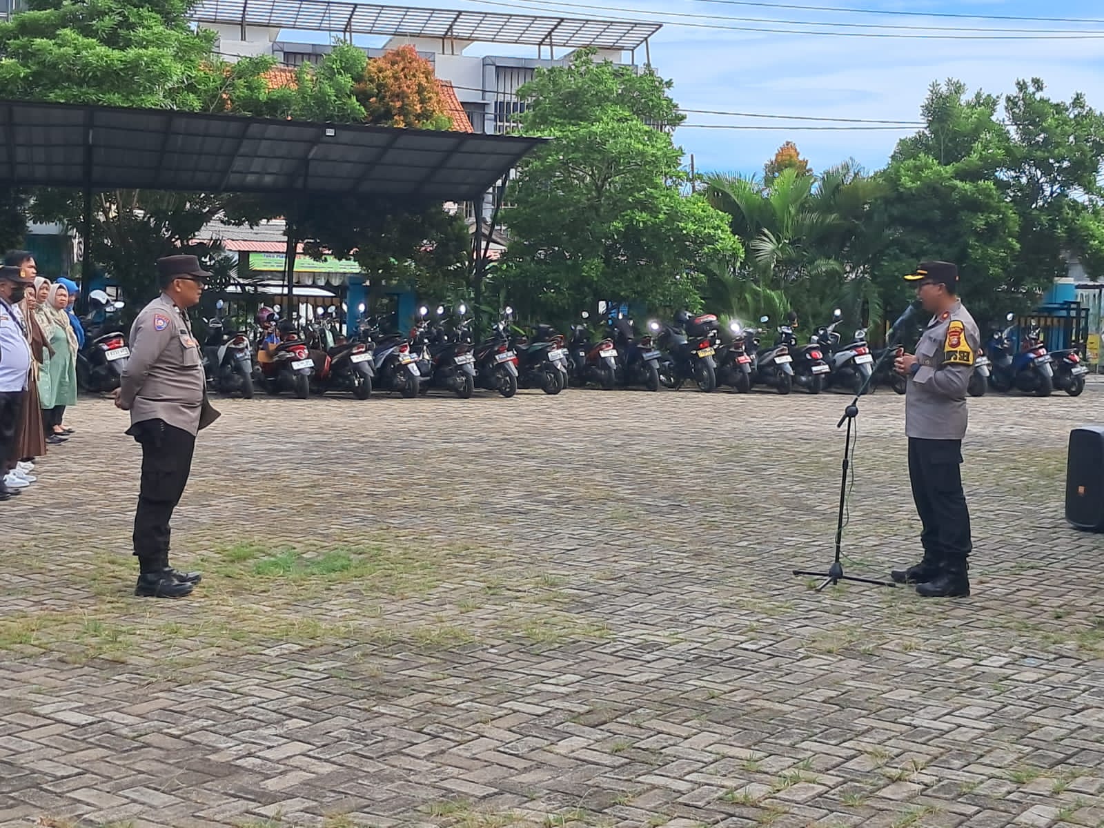 “Jaga putra putrinya jangan biarkan hanyut oleh pergaulan dan lingkungan yang salah,” pesan Kompol Bambang AS kepada peserta apel.