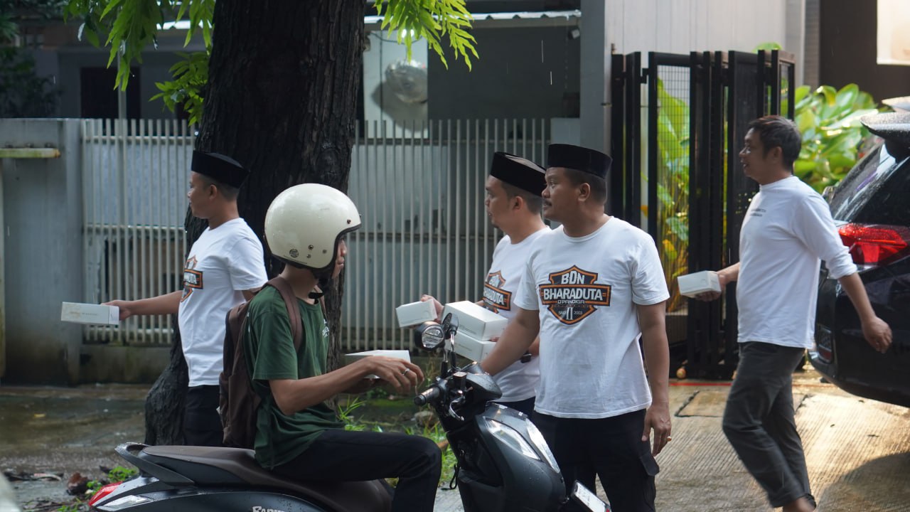 Di tengah kesibukan lalu lintas dan aktivitas warga di sekitar kawasan pelabuhan, para anggota Bharaduta Dermaga turun langsung membagikan paket takjil kepada pengendara dan pejalan kaki.