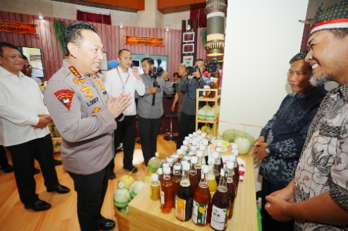 Selepas membuka kegiatan Rakernis, Sigit juga melihat langsung stan usaha milik Sahabat Densus lainnya seperti usaha olahan jahe, kunyit asam dan kerupuk milik Mulyani yang merupakan binaan Satgas Wilayah Jawa Barat.