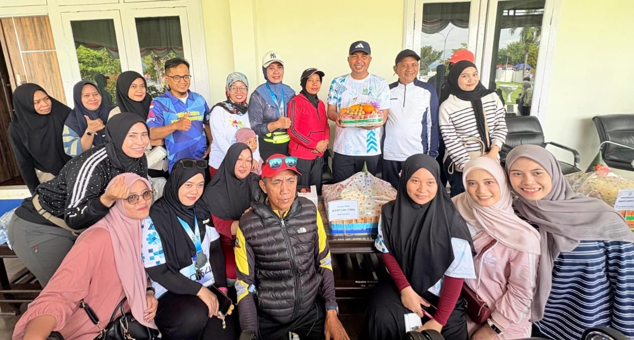 Bupati Luwu Utara Andi Abdullah Rahim menerima ucapan selamat dari para ASN dan perangkat daerah seusai kegiatan Healthy Fun Run HKN di Rumah Jabatan Bupati, Luwu Utara, Minggu (23/11/2025) (Foto: Istimewa).