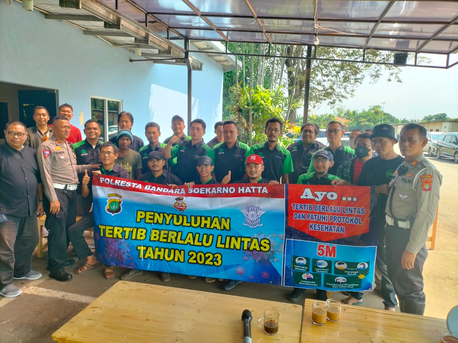 Kegiatan tersebut dipimpin oleh Wakasat Lantas Polresta Bandara Soekarno Hatta AKP Tugiyo bertempat di area pengendapan angkutan online GoCar Bandara Soekarno Hatta, Selasa 9 Mei 2023.