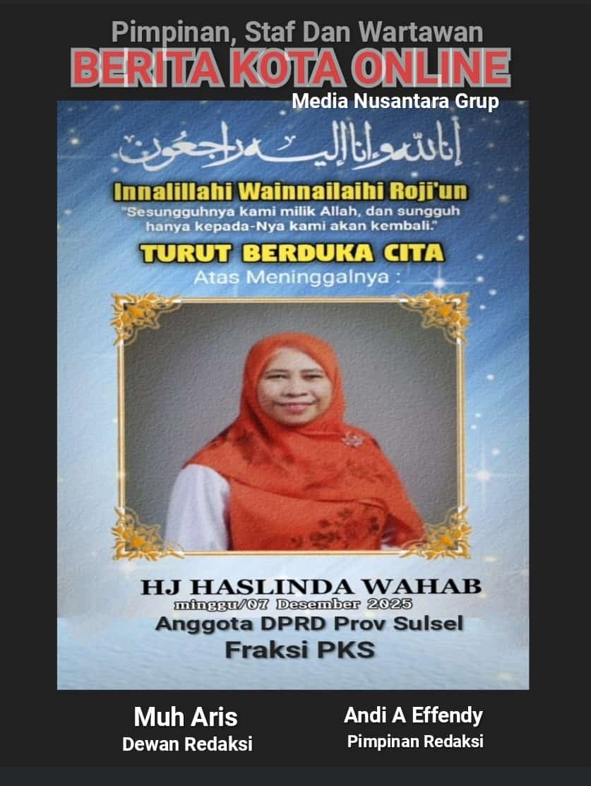 BERITA KOTA ONLINE, MAKASSAR – Kepergian Haslinda Wahab, Anggota DPRD Sulsel, meninggalkan duka yang mendalam bagi berbagai lapisan masyarakat, khususnya di Kecamatan Manggala.