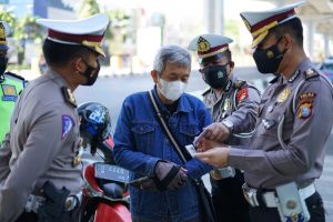 Diungkapkan, ada sekitar enam pengendara yang berhasil dijaring hari ini. “Mereka kami periksa surat kendaraannya, kelengkapan seperti helm, kaos tangan, jaket, sepatu dan masker,” ungkapnya.