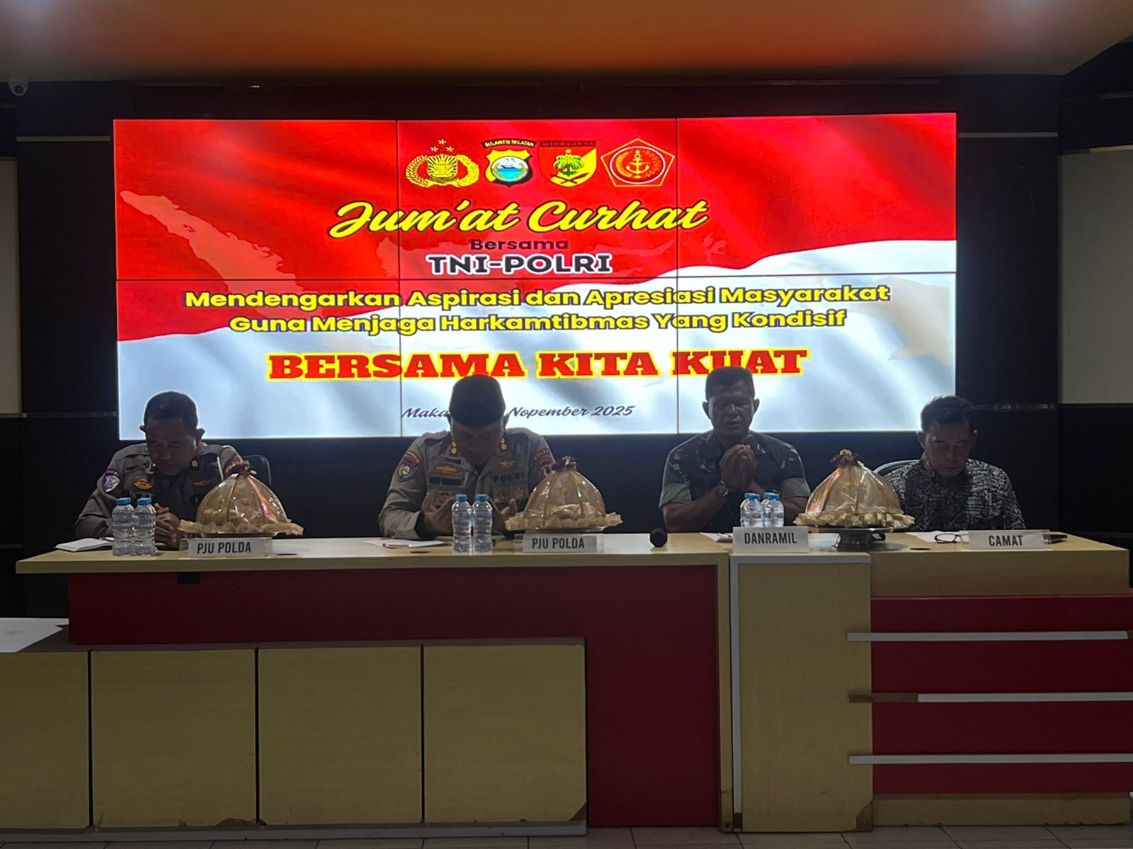 Makassar, Beritakota Online-Wadir Binmas Polda Sulsel mewakili Kapolda Sulsel melaksanakan kegiatan Jumat Curhat rutin di Kantor Camat Biringkanayya, Makassar, pada Jumat, 7 November 2025.