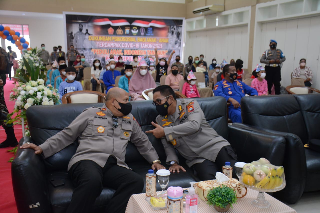 “Kegiatan dukungan Psikososial ini dilaksanakan secara serentak di berbagai lokasi dengan sasaran yang ditentukan pada seluruh wilayah Polda Dan jajaran dengan peserta 2.333 anak, terdiri dari 2.138 anak yang ditinggalkan orang tuanya dan 195 anak penyandang disabilitas. Oleh karena itu, diperlukan sentuhan-sentuhan semacam ini untuk memberikan penguatan psikologis agar mereka mampu menatap masa depannya serta menumbuhkan kepedulian kepada lingkungan sekitarnya”. Tutur Kapolri Jenderal Polisi Drs. Listyo Sigit Prabowo, M.Si.