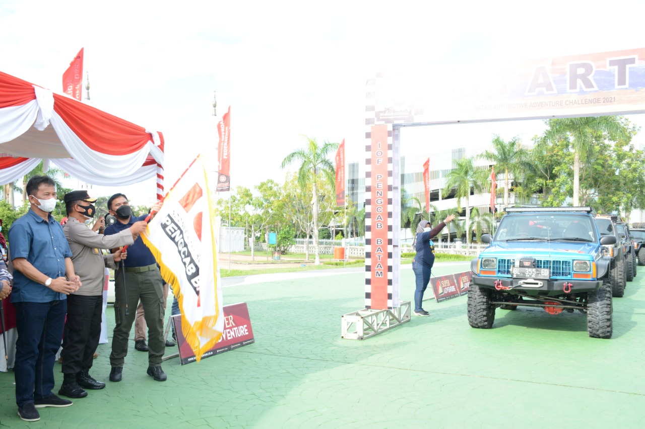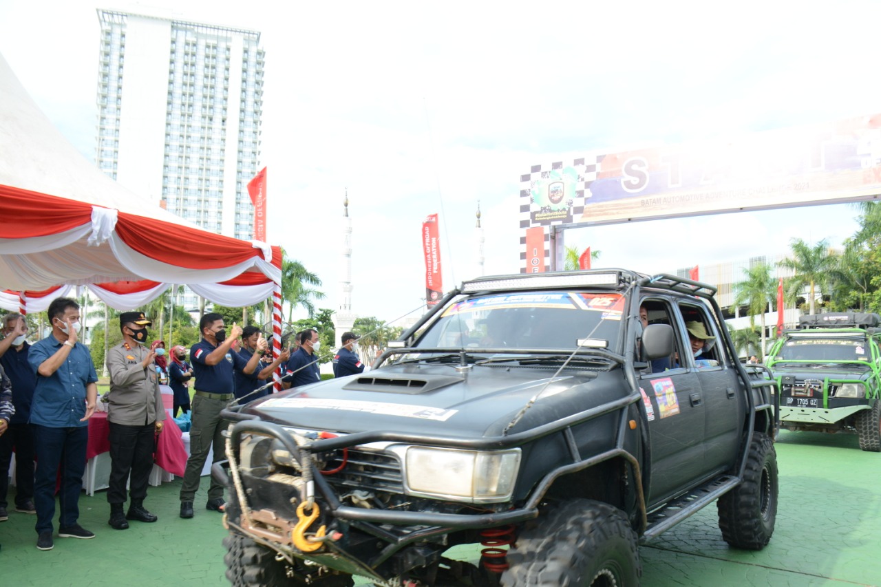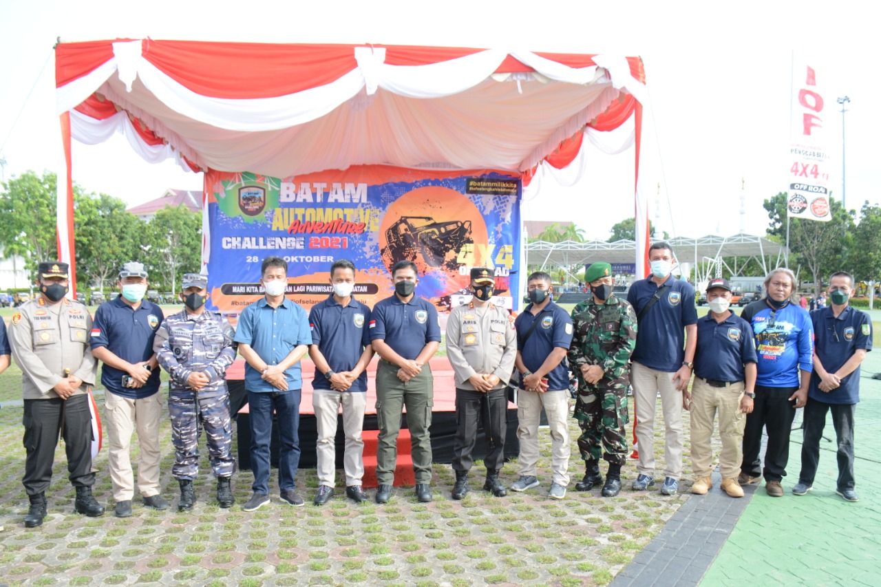 Batam, Beritakota Online-Kapolda Kepri Irjen Pol Dr. Aris Budiman, M.Si hadiri Pembukaan Batam Automotive Adventure Challenge oleh IOF Kota Batam di Alun-Alun Engku Putri Batam centre kota Batam pada hari Jumat (29/10/21).