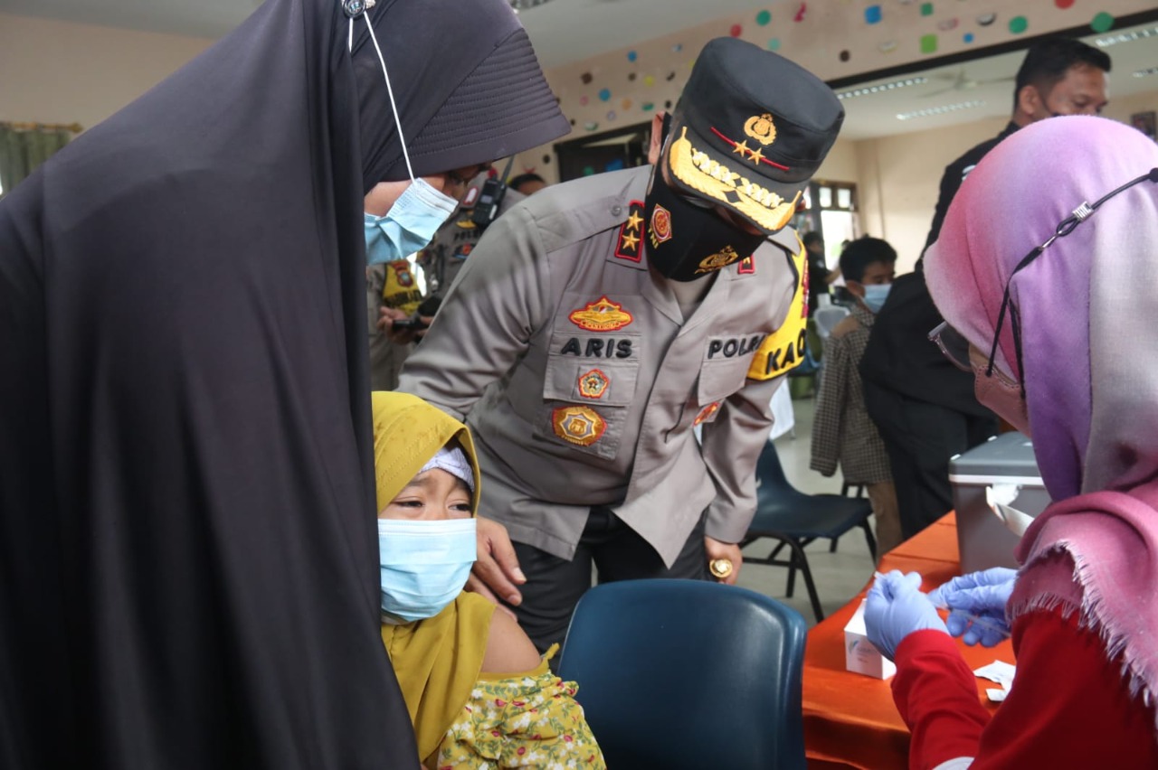 Antusias orang tua di Kepri sangat tinggi membawa anak – anaknya untuk Vaksinasi. Vaksinasi untuk anak usia 6-11 tahun yang dilaksanakan di SDN 019 Sagulung sebanyak 389 Dosis Sinovac. Tutup Kasubbid Penmas Bidhumas Polda Kepri Kompol Robby Topan Manusiwa, S.I.K.