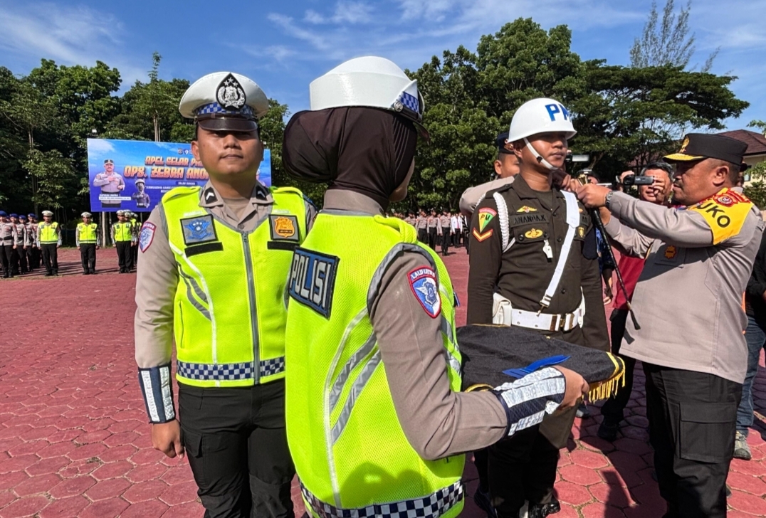 Kendari, Beritakotaonline.id— Polda Sulawesi Tenggara (Sultra) menggelar Apel Pasukan Operasi Zebra Anoa 2025 di Lapangan Presisi Mapolda Sultra, Senin (17/11/2025). Apel Gelar Pasukan dipimpin Kapolda Sultra Irjen Pol Didik Agung Widjanarko, S.I.K., M.H dan dihadiri Danrem 143/Halu Oleo Brigjen TNI Wahyu Sugiarto, Danlanud Halu Oleo, Danlanal Kendari, Ketua DPRD Sultra, Wakapolda Sultra Brigjen Pol Dr. Gidion Arif Setyawan, S.H., S.I.K., M.Hum, Irwasda Polda Sultra Kombes Pol Hartoyo, S.I.K, serta para Pejabat Utama Polda Sultra, perwakilan Dinas Perhubungan dan Jasa Raharja. Apel juga melibatkan personel gabungan TNI–Polri.