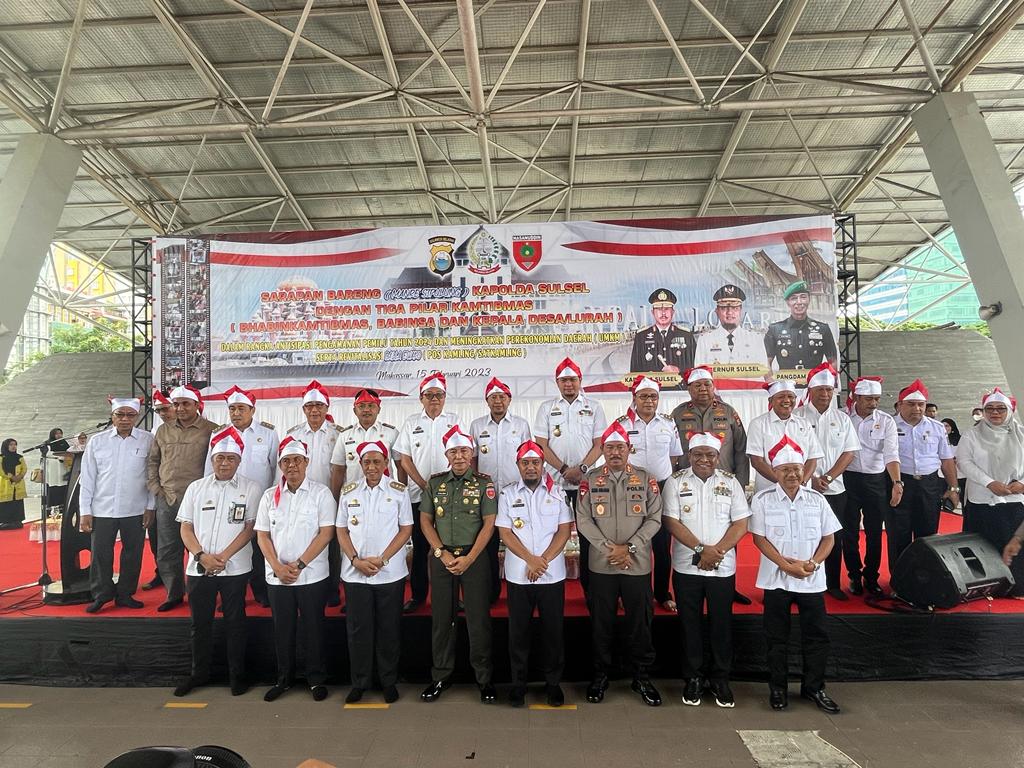 Kegiatan tersebut turut di hadiri oleh Gubernur Sulawesi Selatan, Pangdam, Kapolda, para Kapolres, Walikota/Bupati, Dandim, Camat, Lurah dan Kepala Desa, Babinsa, Bhabinkamtibmas.