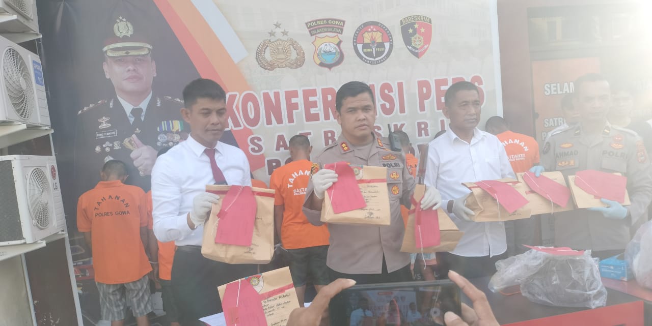 Dalam relisnya AKBP Reonald TS Simajuntak, didampangi Kasat Reskrim AKP Bachtiar dan Kasi Humas Polres Gowa menjelaskan bahwa sementara pihaknya baru bisa mengamankan 8 dari 13 pelaku