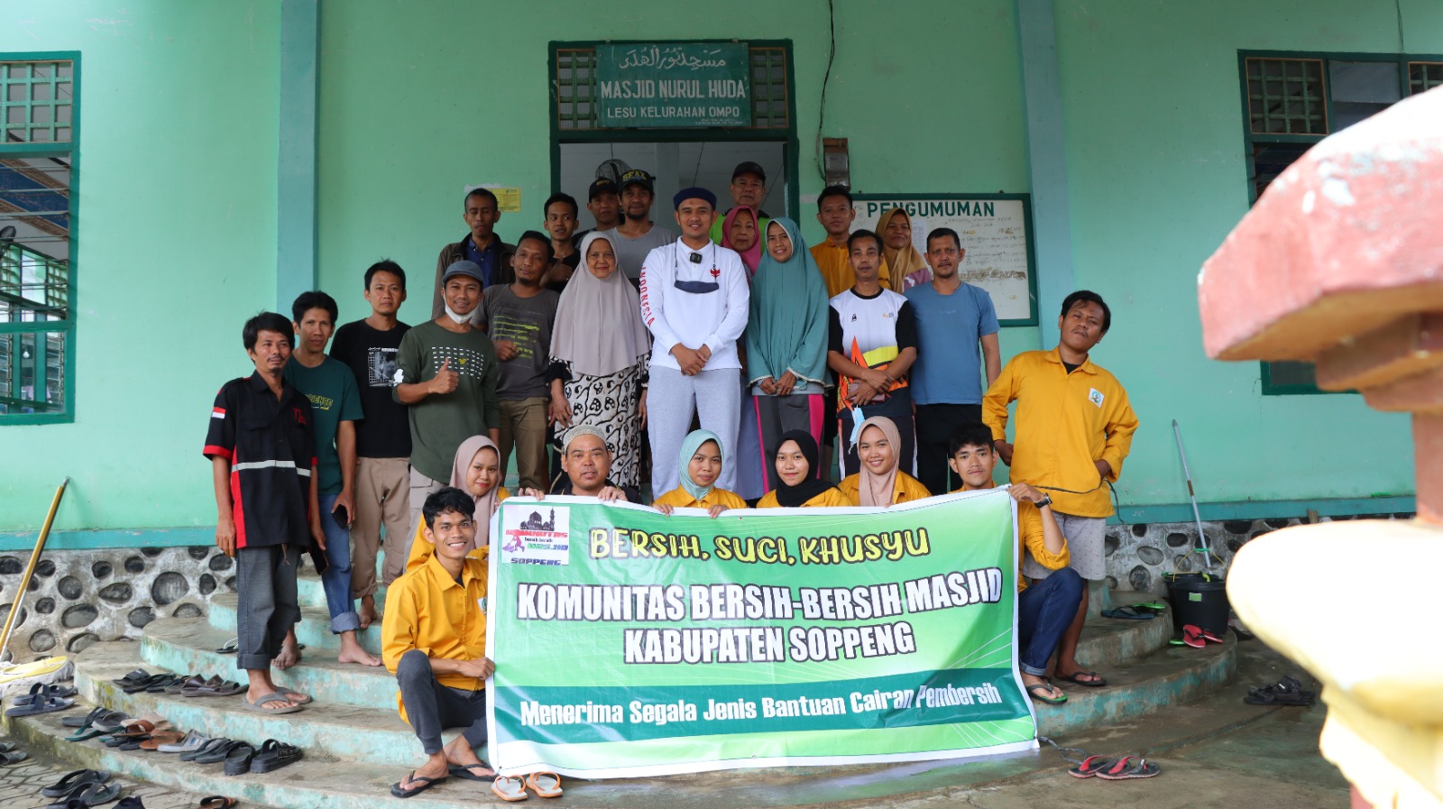 Gotong royong yang dilaksanakan dalam rangka membersihkan Masjid yang diinisiasi oleh Komunitas Bersih – bersih Masjid Kab. Soppeng yang dipimpin langsung oleh Ali selaku Koordinator.