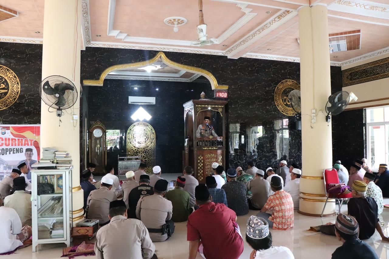 Mengawali Safari dan Jumat Curhat, AKBP Dr. ( C ) H. Muh. Yusuf Usman S.H.,S.I.K.,M.T memperkenalkan diri terlebih dahulu kepada para jamaah selaku Kapolres Soppeng yang baru sekaligus memberikan Tausyah Agama.