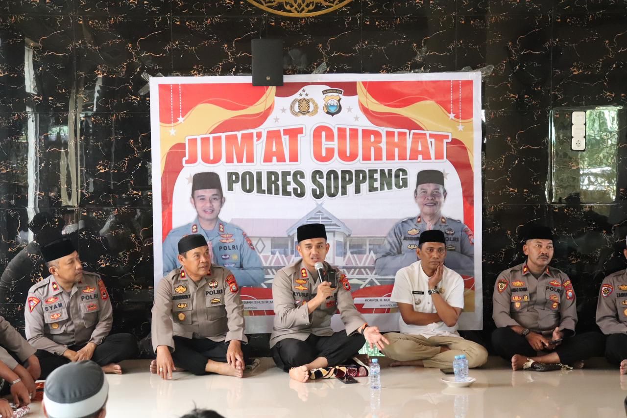 Soppeng, Beritakota Online-Program Safari Jumat dan Jumat Curhat terus digalakkan Kapolres Sopppeng AKBP Dr. ( C ) H. Muh. Yusuf Usman S.H.,S.I.K.,M.T guna mengoptimalkan pelayanan Polri kepada masyarakat.