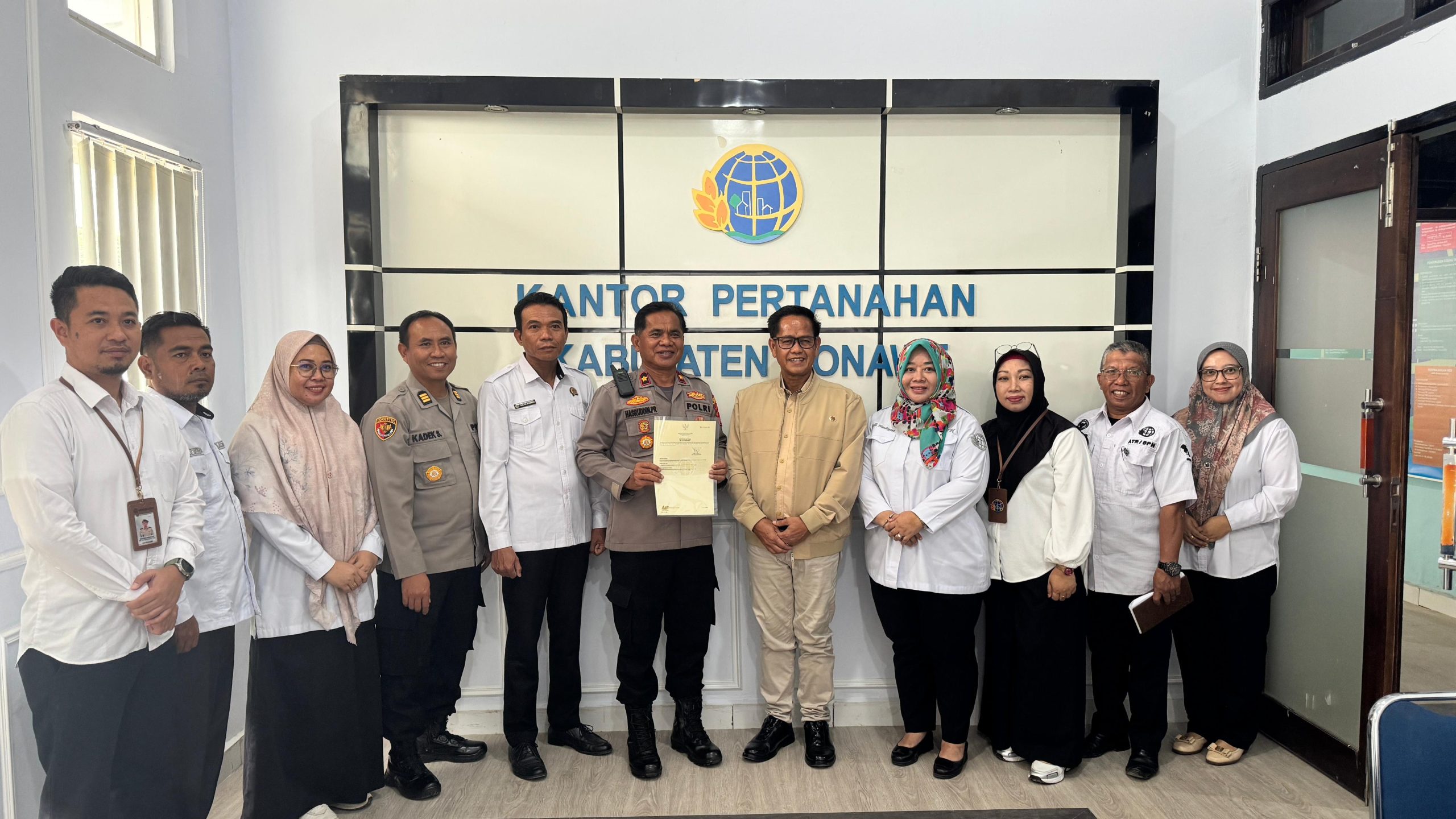 Konawe, Beritakota Online – Wakil Kepala Kepolisian Resor (Wakapolres) Konawe, Kompol Hasruddin, S.E., M.E., didampingi Kepala Bagian Logistik (Kabaglog) Polres Konawe AKP Kadek Sujayana, secara resmi menerima Sertifikat Lokasi Lapangan Tembak Polres Konawe dalam kegiatan yang berlangsung di Kantor Badan Pertanahan Nasional (BPN) Kabupaten Konawe, 7/1/2026.