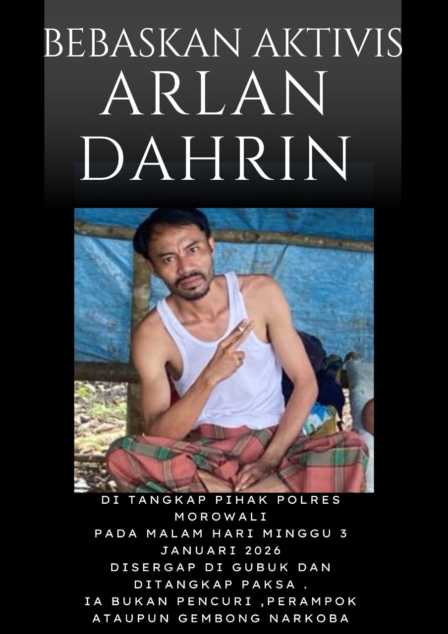 Dilokasi IUP PT. RCP yang sedang berpolemik inilah, Arlan Dahrin aktivis lingkungan ditangkap paksa oleh puluhan personal kepolisian Satreskrim Polres Morowali, pada Sabtu malam, 3 Januari 2025. Aktivis Arlan Dahrin ditangkap atas laporan oknum humas local PT. TAS, Sukardin Panangi atas dugaan Tindak Pidana Penghapusan Ras dan Etnis yang terjadi pada saat aksi spontanitas pada 7 september 2025.