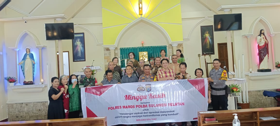 Giat *MINGGU KASIH* dilaksanakan oleh Personil SAT Binmas Polres Maros dan Polsek Turikale, sekaligus silaturahmi dengan para pengurus jemaat untuk lebih menjalin pertukaran informasi dan merespon keluhan-Keluhan dan permasalahan pada jemaat dan warga.