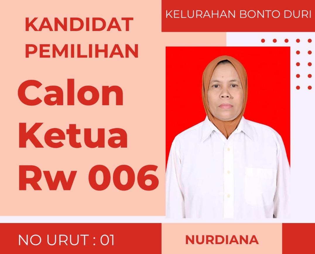 Dengan pengalaman, rekam jejak pelayanan sosial, dan kemampuan membangun hubungan dengan para Ketua RT, Nurdiana kini menjadi salah satu kandidat yang paling diperhitungkan dalam kontestasi RW 006 Bonto Duri.