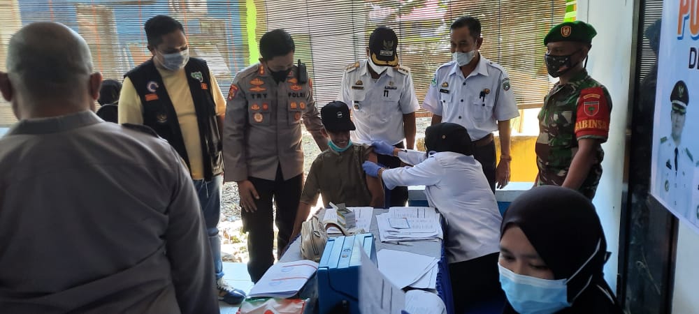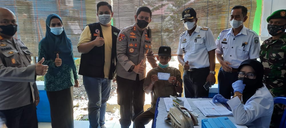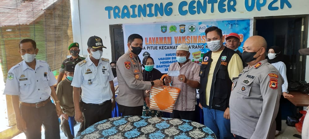 Kapolres Pangkep AKBP TRY HANDAKO PUTRA. W, S.IK memantau langsung kegiatan vaksinasi yang dilaksanakan serta memberikan aspresiasi atas pelaksanaan vaksinasi covid 19 di Desa Pitue Kecamatan Ma’rang guna percepatan vaksinasi covid khususnya di Kabupaten Pangkep.