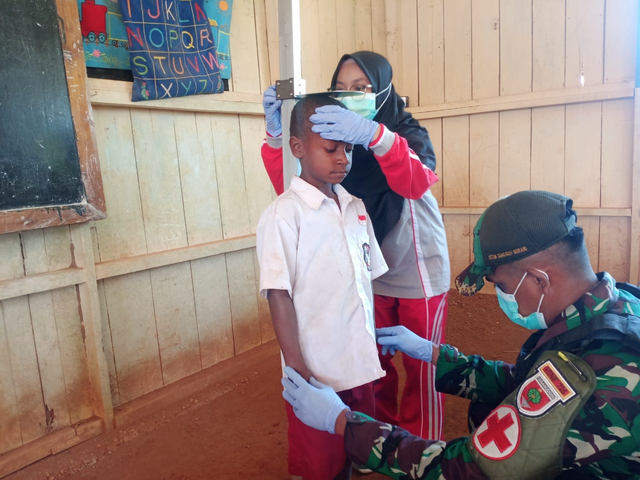 Boven Digoel, -Sabtu, 24 Februari 2023, dalam rangka meningkatkan status perkembangan Gizi Serta Kesehatan Anak-anak wilayah perbatasan RI-PNG (Republik Indonesia – Papua New Guinea), Satgas Pamtas Yonif 725/Woroagi yang di bawah naungan Korem 174/ATW Pos Kombut bekerjasama dengan Puskesmas Kombut memberikan layanan kesehatan mulai dari mengecek kesehatan Anak-anak, mengukur tinggi dan berat badan Anak-anak serta setiap Anak diberikan obat cacing di SD. YPPK. ST. Yohanes Kombut Kampung Kombut, Distrik Kombut, Kabupaten Boven Digoel.
