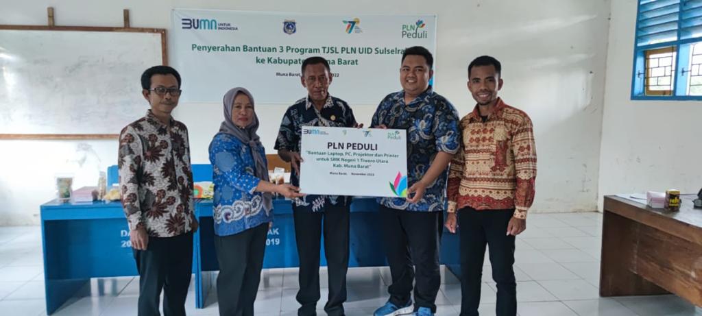 Melalui program Tanggung Jawab Sosial dan Lingkungan (TJSL) PLN Peduli memberikan bantuan sarana pendidikan berupa 15 komputer, 3 laptop beserta perangkat pendukung lainnya bagi SMK Negeri 2 Muna Barat.