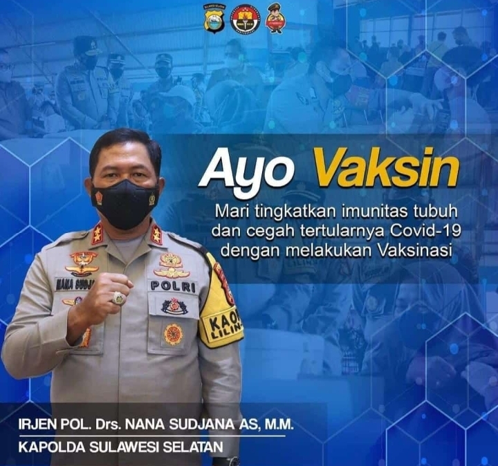 “Alhamdulillah, apa yang kami kerjakan adalah amanah Presiden RI, Ir. Joko Widodo dan Kapolri Jenderal Listyo Sigit, agar jajaran Kepala Satuan Wilayah (Kasatwil) dalam hal ini Kapolda untuk bergerak mensukseskan program vaksinasi serentak nasional, dan alhamdulillah beberapa Polres sudah bekerja maksimal,” kata Kapolda Sulsel, Irjen Pol Nana Sudjana, Selasa 18 Januari 2022.
