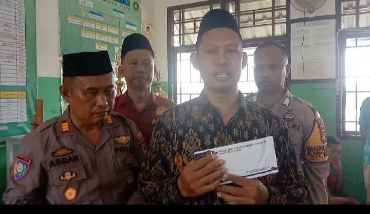 Dalam kunjungannya kasat Binmas langsung memberikan bantuan tunai untuk pengembangan pendidikan baik di tingkat madrasah Tsanawiyah dan madrasah Aliyah.dan sumbangan tersebut di terima langsung pada ketua yayasan dan di saksikan oleh Guru dan sejumlah siswa siswi madrasah.