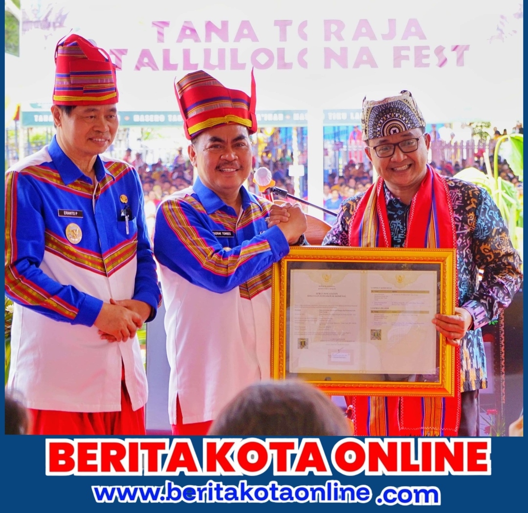 Makale, Beritakota Online-Kabupaten Tana Toraja kini memiliki perlindungan hukum resmi atas kerbau belang khas daerahnya, Tedong Bonga. Kantor Wilayah Kementerian Hukum Sulawesi Selatan (Kanwil Kemenkum Sulsel) menyerahkan Surat Pencatatan Kekayaan Intelektual Komunal (KIK) Sumber Daya Genetik “Tedong Bonga” dalam peringatan HUT ke-68 Kabupaten Tana Toraja.