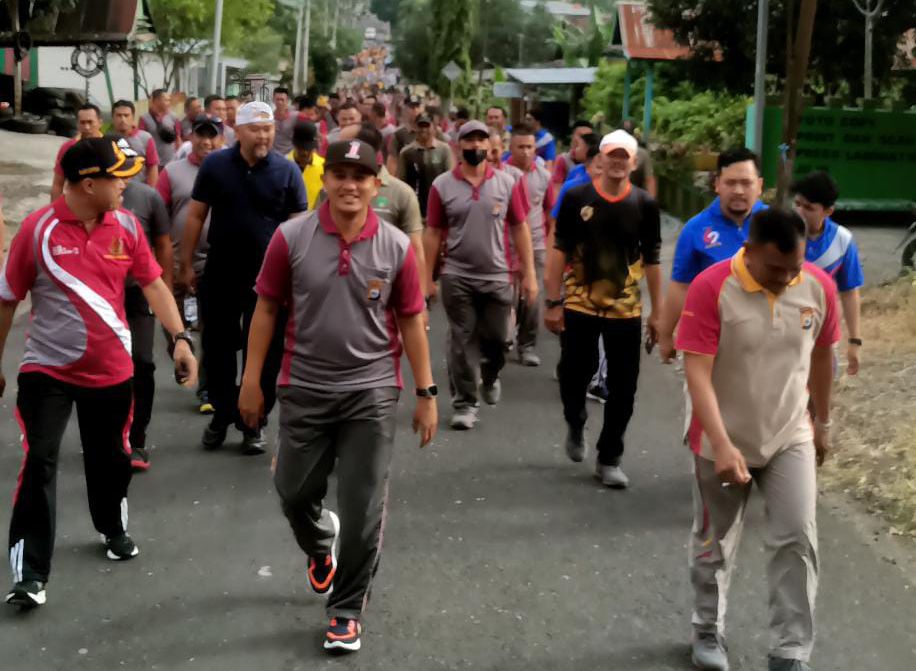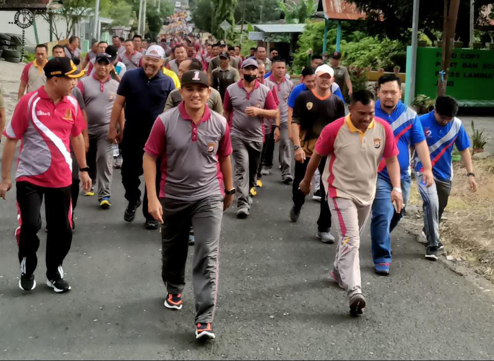 Soppeng, Beritakota Online-Polres Soppeng bersama Kodim 1423 Soppeng melaksanakan olahraga bersama senam kesegaran jasmani 88 dan jalan santai untuk membangun kebersamaan TNI dan Polri serta FKPD Kab. Soppeng, Jumat pagi 27 Januari 2023.