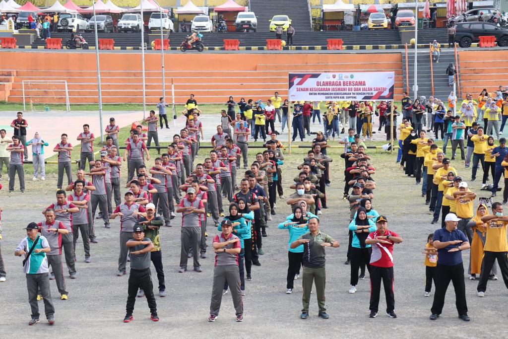 Kapolres Soppeng AKBP Dr. (C) H. Muhammad Yusuf Usman S.H.,S.I.K.,M.T dalam kesempatannya mengungkapkan bahwa olahraga bersama ini dalam rangka membangun kebersamaan dan penguatan sinergitas khususnya TNI dan Polri serta pemerintah Kabupaten Soppeng”.bebernya
