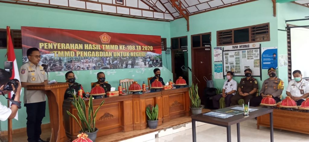 “TMMD ke-108 Tahun 2020 telah resmi ditutup secara serentak, penutupan dilakukan dengan cara sederhana, tidak ada upacara di lapangan seperti di tahun-tahun sebelumnya dikarenakan kondisi yang tidak memungkinkan” ungkapnya.